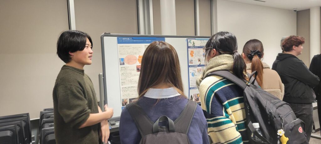 前半は、トビタテ!留学JAPANで留学した学生を含む4名による口頭発表が行われ、各自が留学先で学んだことや感じたことを報告しました。後半には、12名の学生によるポスター発表があり、参加者との情報交換や意見交換が活発に行われました。