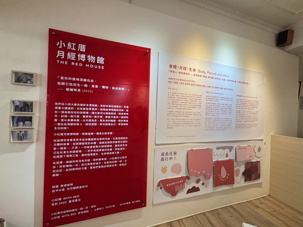 まず、博物館の概要について簡単に説明します。2022年夏にオープンしたこの施設を運営しているのは、生理を巡る不平等や貧困といった問題に取り組む台湾のNPO法人「小紅帽 With Red」という団体です。(小紅帽は中国語で“赤ずきん”を意味します)代表のヴィヴィ・リンさんは、生理に対する偏見やネガティブなイメージの背景として、人々が生理について正確な情報を知らないという根本的な問題があると感じていました。そこで、生理について正しい知識を得たり、オープンに話し合ったりすることのできる空間を作りたいとの想いからこの博物館を設立したそうです。